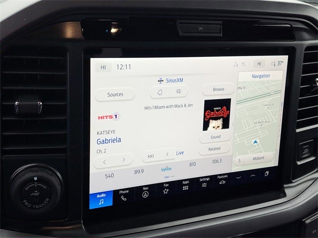 360 Degree Camera, 4 Pickup Box Tie-Down Plates, 4-Wheel Disc Brakes, 400W Cab & Bed Outlets, 6 Speakers, 6 Angular Bright Anodized Step Bar, 6 Black Running Boards, ABS brakes, Adaptive Cruise Control w/Stop & Go, Air Conditioning, Alloy wheels, AM/FM radio: SiriusXM with 360L, Auto High-beam Headlights, Auto-Dimming Rear-View Mirror, Bed Utility Package, Black Exterior Badging, Black Grille, Black Painted Grille w/Chrome Center Bar, Body-Color Front & Rear Bumpers, Brake assist, Bumpers: chrome, Chrome Door & Tailgate Handles, Chrome Single-Tip Exhaust, Chrome wheels, Cloth 40/20/40 Front Seat, Cloth 40/Console/40 Front Seats, Compass, Connected Navigation, Console Worksurface, Dark Interior Appliques, Delay-off headlights, Driver door bin, Driver State Detection, Driver vanity mirror, Dual Exhaust w/Black Tips, Dual front impact airbags, Dual front side impact airbags, Dual-Zone Electronic Automatic Temperature Control, Electronic Stability Control, Emergency communication system: SYNC 4 911 Assist, Equipment Group 302A Mid, Evasive Steering Assist, Floor Shifter, Ford Co-Pilot360 Assist 2.0, Front anti-roll bar, Front Center Armrest, Front fog lights, Front Parking Sensors, Front reading lights, Front wheel independent suspension, Fully automatic headlights, Gray Box Side Decal, GVWR: 6,650 lbs Payload Package, Heated door mirrors, Heated Front Seats, Illuminated entry, Intelligent Access w/Push Button Start, Internet access capable: FordPass Connect 5G, LED Box Lighting, Low tire pressure warning, Mobile Office Package, Occupant sensing airbag, Outside temperature display, Overhead airbag, Overhead console, Panic alarm, Partitioned Lockable Rear Storage, Passenger door bin, Passenger vanity mirror, Power door mirrors, Power Glass Heated Sideview Mirrors, Power steering, Power windows, Power-Sliding Rear Window, Radio data system, Radio: AM/FM Stereo w/SiriusXM 360L, Rear Parking Sensors, Rear reading lights, Rear step bumper, Rear window defroster, Remote keyless entry, Remote Start System w/Remote Tailgate Release, Security system, Speed control, Split folding rear seat, Steering wheel mounted audio controls, SYNC 4 w/Enhanced Voice Recognition, Tachometer, Tailgate Step w/Tailgate Work Surface, Telescoping steering wheel, Tilt steering wheel, Towing Technology, Traction control, Trip computer, Variably intermittent wipers, Voltmeter, Wheels: 18 Chrome-Like PVD, Wheels: 20 Gloss Black Painted Aluminum, Wrapped Steering Wheel, XLT Black Appearance Package Plus.