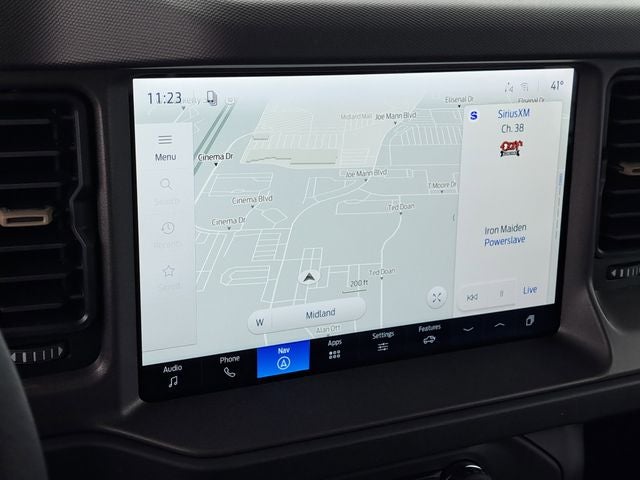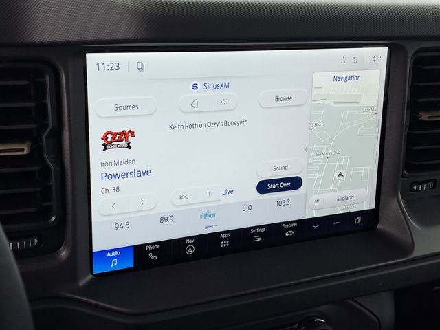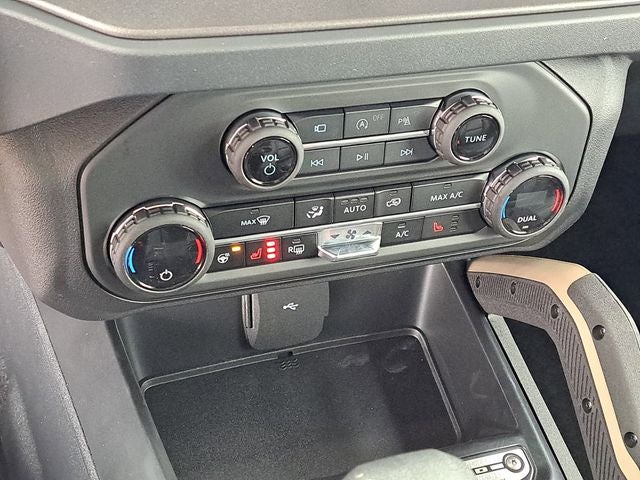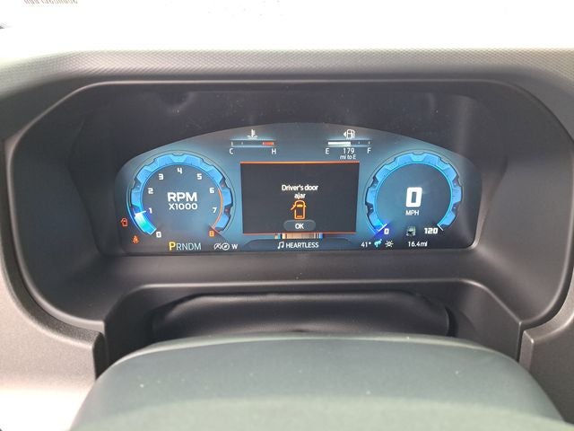 2-Door Intelligent Access with Lock/Unlock, 360-Degree Camera, 4-Wheel Disc Brakes, 4.7 Axle Ratio, 7 Speakers, ABS brakes, Adaptive Cruise Control, Air Conditioning, Alloy wheels, AM/FM radio: SiriusXM with 360L, AM/FM Stereo, Ambient Footwell Lighting, Auto High-Beam Headlamps, Auto High-beam Headlights, Auto-dimming Rear-View mirror, BLIS Blind Spot Information System, Brake assist, Compass, Connected Navigation, Convertible HardTop, Convertible roof lining, Delay-off headlights, Driver and Front Passenger Illuminated Sliding Visor Vanity Mirrors, Driver door bin, Driver vanity mirror, Dual front impact airbags, Dual front side impact airbags, Dual Smart Charging USB Ports, Dual-Zone Electronic Automatic Temperature Control, Electronic Stability Control, Emergency communication system: 911 Assist, Equipment Group 334A Lux Package, Evasive Steering Assist, Exterior Parking Camera Rear, Ford Connectivity Package (1-Year Included), Front and Rear Floor Liners Without Carpet Floor Mats, Front anti-roll bar, Front Bucket Seats, Front Center Armrest, Front fog lights, Front Parking Sensors, Front reading lights, Front Row Heated Seats, Front wheel independent suspension, Fully automatic headlights, Glass rear window, Heated door mirrors, Heated Steering Wheel, Illuminated entry, Information on Demand Panel, Integrated roll-over protection, Lane-Keeping System, Leather Shift Knob, Low tire pressure warning, Marine Grade Vinyl Heated Bucket Seats, Occupant sensing airbag, Outside temperature display, Overhead airbag, Overhead console, Panic alarm, Passenger door bin, Passenger vanity mirror, Power door mirrors, Power steering, Power windows, Pre-Collision Assist with Automatic Emergency Braking, Pro Power Onboard - 400W, Radio data system, Rear Parking Sensors, Rear window defroster, Rear window wiper, Rear-View Camera, Remote keyless entry, Security system, Sideview Mirrors, SiriusXM with 360L, Speed control, Split folding rear seat, Steering wheel mounted audio controls, SYNC 4, Tachometer, Telescoping steering wheel, Tilt steering wheel, Traction control, Trip computer, Variably intermittent wipers, Voltmeter, Wheels: 17 Carbonized Gray-Painted Aluminum.