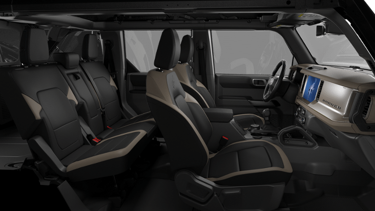 18 Bright Machined Aluminum Wheels, 3.73 Axle Ratio, 360-Degree Camera, 4-Wheel Disc Brakes, 7 Speakers, ABS brakes, Adaptive Cruise Control, Air Conditioning, Alloy wheels, AM/FM radio: SiriusXM with 360L, AM/FM Stereo, Auto High-beam Headlights, Auto-dimming Rear-View mirror, Automatic temperature control, Brake assist, Carbonized Gray Molded-in-Color Hard Top, Compass, Connected Navigation, Delay-off headlights, Driver door bin, Driver vanity mirror, Dual front impact airbags, Dual front side impact airbags, Electronic Stability Control, Emergency communication system: 911 Assist, Equipment Group 314A Lux Package, Evasive Steering Assist, Exterior Parking Camera Rear, Ford Connectivity Package (1-Year Included), Front and Rear Floor Liners Without Carpet Floor Mats, Front anti-roll bar, Front Bucket Seats, Front Center Armrest, Front dual zone A/C, Front fog lights, Front Parking Sensors, Front reading lights, Front Row Top Panels and Door Storage Bags, Front wheel independent suspension, Fully automatic headlights, Hard Top Sound Deadening Headliner, Heated door mirrors, Heated front seats, Heated Leather-Trimmed/Vinyl Bucket Seats, Heated steering wheel, Illuminated entry, Information on Demand Panel, Integrated roll-over protection, Leather Shift Knob, Low tire pressure warning, Navigation system: Connected Navigation, Occupant sensing airbag, Outside temperature display, Overhead airbag, Overhead console, Panic alarm, Passenger door bin, Passenger vanity mirror, Power door mirrors, Power driver seat, Power passenger seat, Power steering, Power windows, Radio data system, Rear seat center armrest, Rear-Window Defroster and Washer, Remote keyless entry, Security system, Sideview Mirrors, SiriusXM with 360L, Speed control, Split folding rear seat, Steering wheel mounted audio controls, SYNC 4, Tachometer, Telescoping steering wheel, Tilt steering wheel, Traction control, Trip computer, Variably intermittent wipers, Voltmeter.