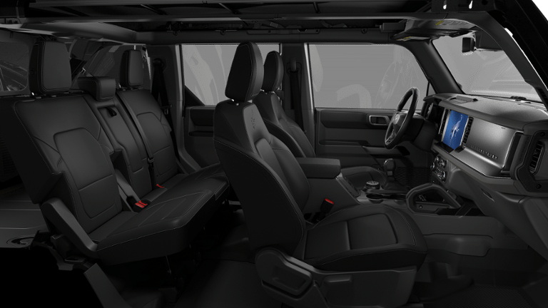 18 Bright Machined Aluminum Wheels, 4-Wheel Disc Brakes, 7 Speakers, ABS brakes, Air Conditioning, Alloy wheels, AM/FM radio: SiriusXM with 360L, AM/FM Stereo, Auto High-beam Headlights, Auto-dimming Rear-View mirror, Automatic temperature control, Brake assist, Carbonized Gray Molded-in-Color Hard Top, Compass, Connected Navigation, Delay-off headlights, Driver door bin, Driver vanity mirror, Dual front impact airbags, Dual front side impact airbags, Electronic Stability Control, Emergency communication system: 911 Assist, Equipment Group 312A Mid Package, Exterior Parking Camera Rear, Ford Connectivity Package (1-Year Included), Front anti-roll bar, Front Bucket Seats, Front Center Armrest, Front dual zone A/C, Front fog lights, Front reading lights, Front Row Top Panels and Door Storage Bags, Front wheel independent suspension, Fully automatic headlights, Hard Top Sound Deadening Headliner, Heated door mirrors, Heated front seats, Heated Leather-Trimmed/Vinyl Bucket Seats, Heated steering wheel, High Clearance Fender Flares, High Clearance Suspension, Illuminated entry, Integrated roll-over protection, Leather Shift Knob, Low tire pressure warning, Navigation system: Connected Navigation, Occupant sensing airbag, Outside temperature display, Overhead airbag, Overhead console, Panic alarm, Passenger door bin, Passenger vanity mirror, Position-Sensitive Bilstein Shock Absorbers, Power door mirrors, Power driver seat, Power passenger seat, Power steering, Power windows, Radio data system, Rear seat center armrest, Rear-Window Defroster and Washer, Remote keyless entry, Sasquatch Package, Security system, SiriusXM with 360L, Speed control, Split folding rear seat, Steering wheel mounted audio controls, SYNC 4, Tachometer, Telescoping steering wheel, Tilt steering wheel, Traction control, Trip computer, Upgraded Carpet Floor Mats, Variably intermittent wipers, Voltmeter, Wheels: 17 Black High Gloss-Painted Aluminum, Wheels: 17 Matte Black Alloy.