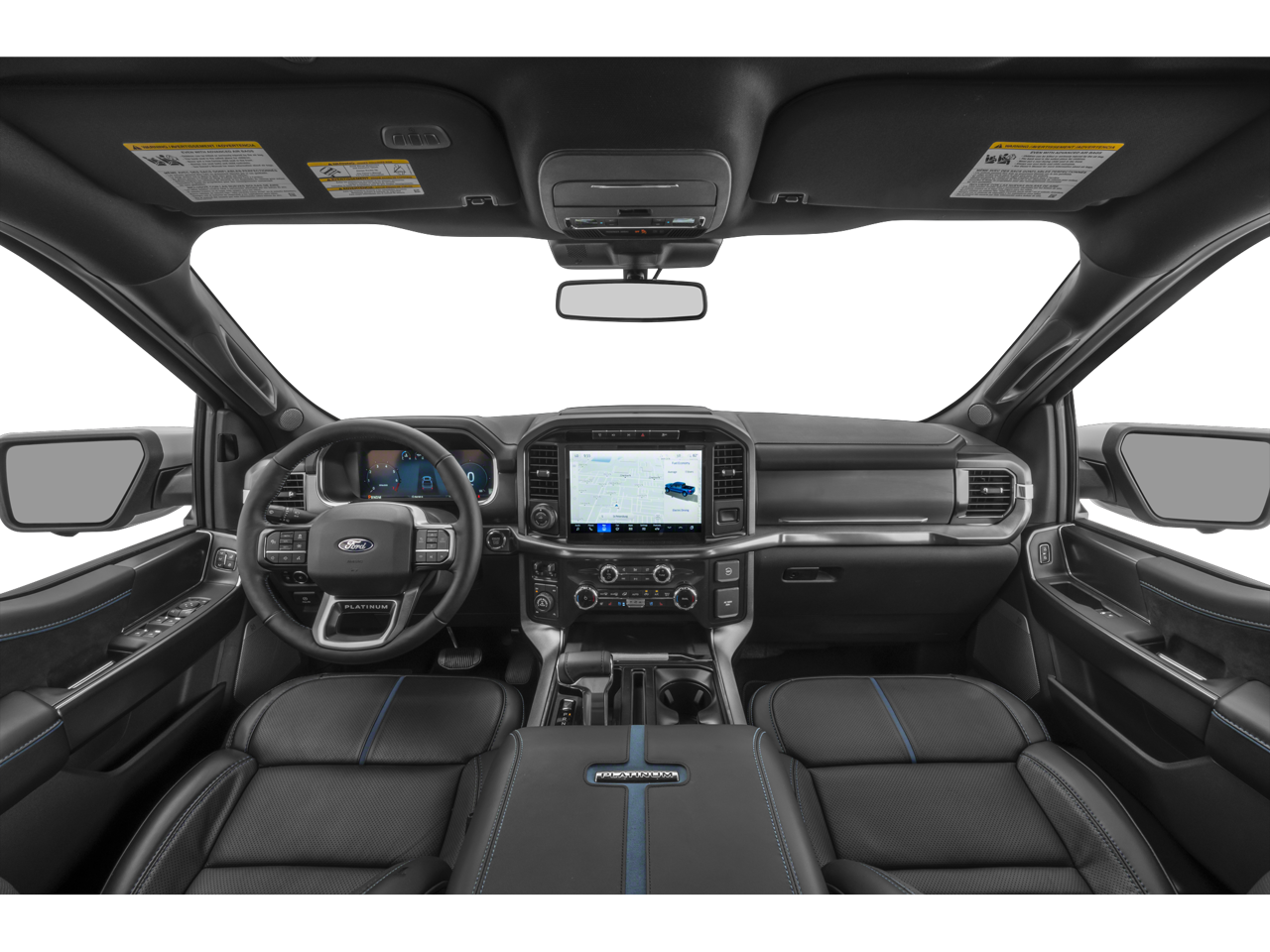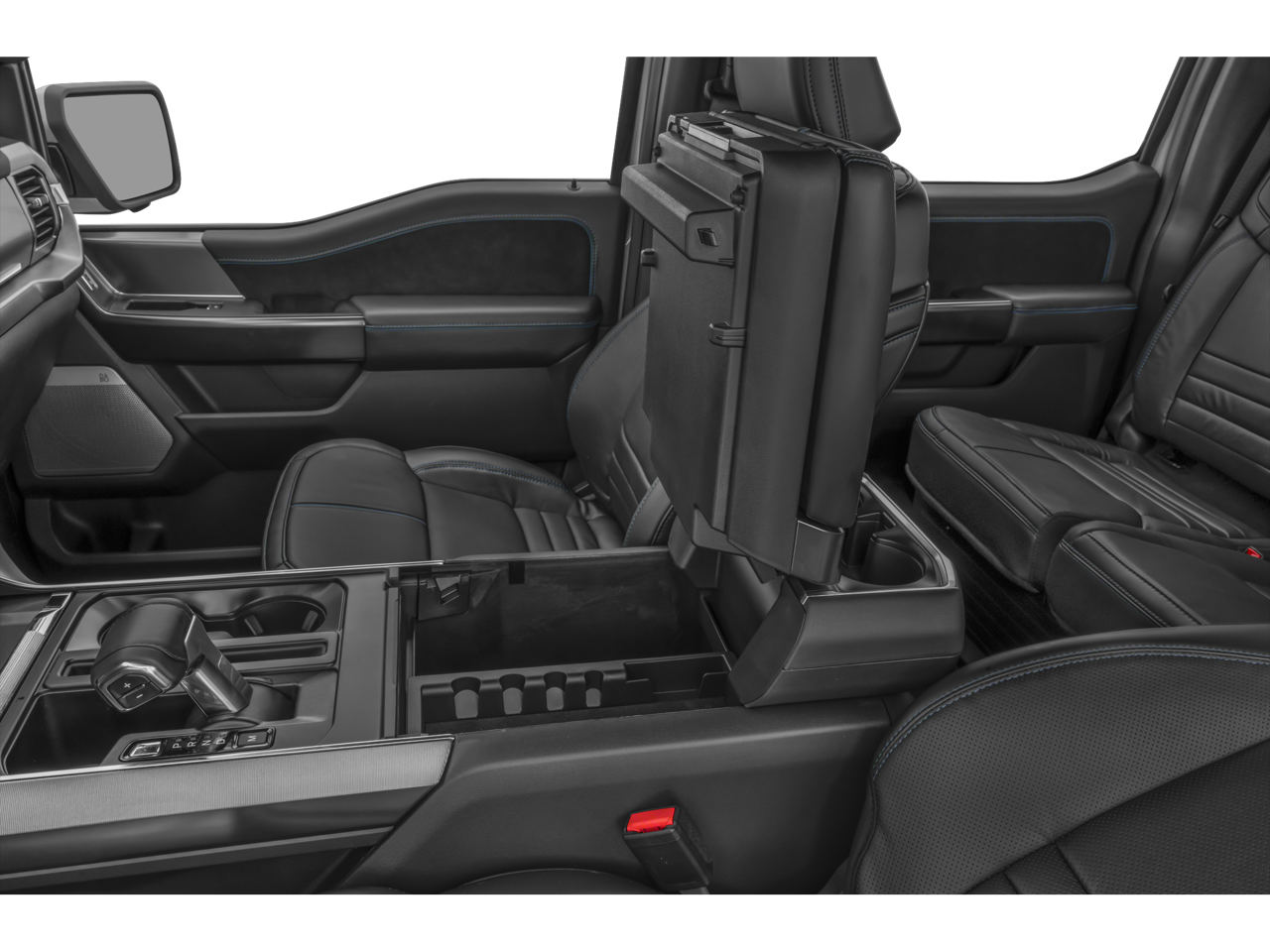 4-Wheel Disc Brakes, 4x4 FX4 Off-Road Bodyside Decal, 8 Speakers, ABS brakes, Adjustable pedals, Air Conditioning, Alloy wheels, AM/FM radio: SiriusXM with 360L, Auto High-beam Headlights, Auto tilt-away steering wheel, Auto-dimming door mirrors, Auto-dimming Rear-View mirror, Automatic temperature control, Brake assist, Bumpers: body-color, Compass, Delay-off headlights, Driver door bin, Driver vanity mirror, Driver's Side SecuriCode Keyless-Entry Keypad, Dual front impact airbags, Dual front side impact airbags, Electronic Locking with 3.55 Axle Ratio, Electronic Stability Control, Emergency communication system: SYNC 4 911 Assist, Equipment Group 702A High, Ford Connectivity Package (1-Year Included), Front anti-roll bar, Front Bucket Seats, Front Center Armrest, Front dual zone A/C, Front fog lights, Front reading lights, Front wheel independent suspension, Fully automatic headlights, FX4 Off-Road Package, Garage door transmitter, GVWR: 7,400 lbs Payload Package, Head-Up Display, Heated door mirrors, Heated front seats, Heated rear seats, Heated steering wheel, Hill Descent Control, Illuminated entry, Internet access capable: 5G Modem - Ford Connectivity Package, Leather steering wheel, Low tire pressure warning, Memory seat, Monotube Rear Shocks, Navigation system: Connected Navigation, Occupant sensing airbag, Off-Road Tuned Front Shock Absorbers, Outside temperature display, Overhead airbag, Overhead console, Panic alarm, Passenger door bin, Passenger vanity mirror, Pedal memory, Power door mirrors, Power driver seat, Power passenger seat, Power steering, Power windows, Power-Deployable Running Boards, Radio data system, Radio: B&O Sound System by Bang and Olufsen, Radio: B&O Unleashed Sound System by Bang & Olufsen, Rain sensing wipers, Rear reading lights, Rear seat center armrest, Rear step bumper, Rear window defroster, Remote keyless entry, Security system, Speed control, Split folding rear seat, Steering wheel memory, Steering wheel mounted audio controls, SYNC 4 with Enhanced Voice Recognition, Tachometer, Telescoping steering wheel, Tilt steering wheel, Traction control, Tray Style Floor Liner, Trip computer, Turn signal indicator mirrors, Unique Multi-Contour Leather Bucket Seats, Variably intermittent wipers, Ventilated front seats, Wheels: 20 Painted Gloss Ebony Black.