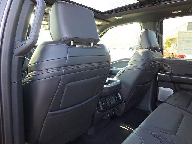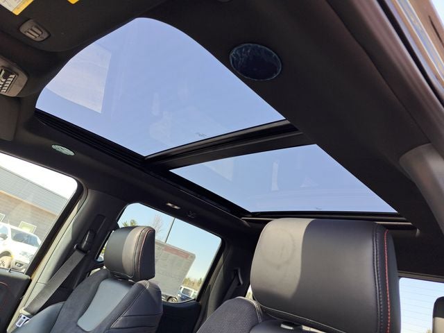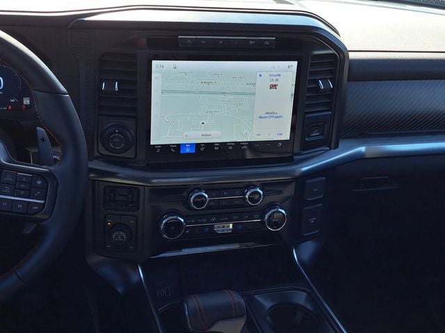 14 Speakers, 17 Cast Aluminum Wheels, 4-Wheel Disc Brakes, ABS brakes, Adjustable pedals, Air Conditioning, Alloy wheels, AM/FM radio: SiriusXM with 360L, Auto High-beam Headlights, Auto tilt-away steering wheel, Auto-dimming door mirrors, Auto-dimming Rear-View mirror, Automatic temperature control, Brake assist, Bumpers: body-color, Carbon Fiber Interior Appliques, Compass, Delay-off headlights, Driver door bin, Driver vanity mirror, Dual front impact airbags, Dual front side impact airbags, Dual Valve Shocks, Electronic Locking with 4.10 Axle Ratio, Electronic Stability Control, Emergency communication system: SYNC 4 911 Assist, Equipment Group 802A Raptor 37, Ford Connectivity Package (1-Year Included), Front anti-roll bar, Front Bucket Seats, Front Center Armrest, Front dual zone A/C, Front fog lights, Front reading lights, Front wheel independent suspension, Fully automatic headlights, Garage door transmitter, Heated door mirrors, Heated front seats, Heated rear seats, Heated steering wheel, Illuminated entry, Internet access capable: 5G Modem - Ford Connectivity Package, Lane Departure Warning System, Leather steering wheel, Leather Trimmed Seats, Low tire pressure warning, Memory seat, Modular Front Bumper, Navigation system: Connected Navigation, Occupant sensing airbag, Outside temperature display, Overhead airbag, Overhead console, Panic alarm, Passenger door bin, Passenger vanity mirror, Pedal memory, Power door mirrors, Power driver seat, Power passenger seat, Power steering, Power windows, Radio data system, Radio: B&O Unleashed Sound System by Bang & Olufsen, Rain sensing wipers, Rear reading lights, Rear step bumper, Rear window defroster, RECARO Unique Leather Front Seats, Remote keyless entry, Security system, Speed control, Speed-sensing steering, Split folding rear seat, Steering wheel memory, Steering wheel mounted audio controls, SYNC 4 with Enhanced Voice Recognition, Tachometer, Telescoping steering wheel, Tilt steering wheel, Traction control, Trip computer, Turn signal indicator mirrors, Twin Panel Moonroof, Variably intermittent wipers, Ventilated front seats, Wheels: Raptor 37 Unique 17 Forged Cast.