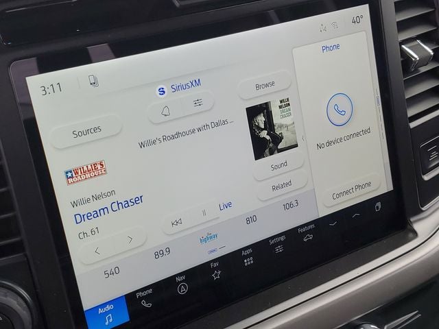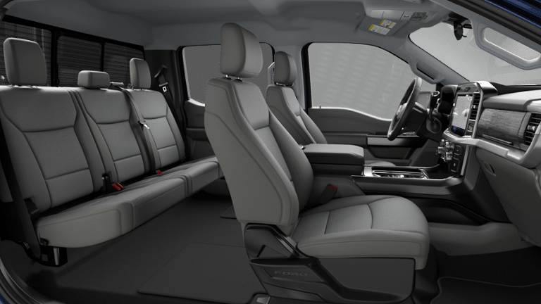 18 Painted Aluminum Wheels, 3.55 Axle Ratio, 360 Degree Camera, 4 Pickup Box Tie-Down Plates, 4-Wheel Disc Brakes, 400W Pro Power Onboard (cab & Bed), 6 Speakers, 6 Angular Bright Anodized Step Bar, ABS brakes, Adaptive Cruise Control with Stop and Go, Air Conditioning, Alloy wheels, AM/FM radio: SiriusXM with 360L, Auto High-beam Headlights, Auto-Dimming Rear-View Mirror, Bed Storage Boxes, Bed Utility Package, Black Painted Mesh Grille with Chrome Center Bar, BlueCruise (equipment + 1 Year + 90-Day Plan), Body-Color Door Handles, Brake assist, Bumpers: body-color, Chrome Door Handles, Chrome Front and Rear Bumpers, Chrome Single-Tip Exhaust, Cloth 40/20/40 Front Seat, Cloth 40/Console/40 Front Seats, Compass, Console Worksurface, Delay-off headlights, Driver door bin, Driver vanity mirror, Dual front impact airbags, Dual front side impact airbags, Dual-Zone Electronic Automatic Temperature Control, Electronic Stability Control, Emergency communication system: SYNC 4 911 Assist, Equipment Group 302A Mid, Ford Co-Pilot360 Assist 2.0, Ford Connectivity Package (1-Year Included), Front anti-roll bar, Front Center Armrest, Front fog lights, Front Parking Sensors, Front reading lights, Front wheel independent suspension, Fully automatic headlights, GVWR: 6,650 lbs Payload Package, Heated door mirrors, Heated Front Seats, Illuminated entry, Intelligent Access with Push Button Start, Internet access capable: 5G Modem - Ford Connectivity Package, LED Box Lighting, Low tire pressure warning, Mobile Office Package, Occupant sensing airbag, Outside temperature display, Overhead airbag, Overhead console, Panic alarm, Partitioned Lockable Rear Storage, Passenger door bin, Passenger vanity mirror, Power door mirrors, Power Glass Heated Sideview Mirrors, Power steering, Power windows, Power-Sliding Rear Window, Radio data system, Radio: AM/FM Stereo with SiriusXM 360L, Rear reading lights, Rear step bumper, Rear window defroster, Remote keyless entry, Remote Start System with Remote Tailgate Release, Security system, Speed control, Split folding rear seat, Steering wheel mounted audio controls, SYNC 4 with Enhanced Voice Recognition, Tachometer, Tailgate Step with Work Surface, Telescoping steering wheel, Tilt steering wheel, Towing Technology, Traction control, Trip computer, Variably intermittent wipers, Wheels: 20 Chrome-Like PVD, Wrapped Steering Wheel, XLT Chrome Appearance Package.