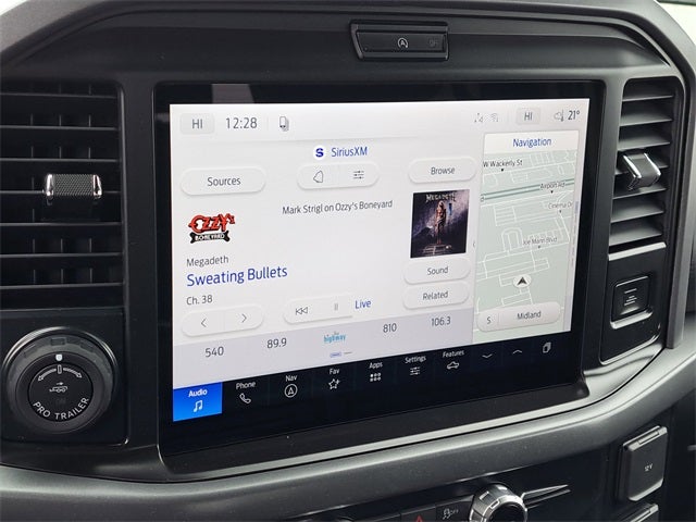 18 Painted Aluminum Wheels, 360 Degree Camera, 4-Wheel Disc Brakes, 400W Pro Power Onboard (cab & Bed), 6 Speakers, 6 Black Running Boards, ABS brakes, Adaptive Cruise Control with Stop and Go, AEB Oncoming, Air Conditioning, Alloy wheels, AM/FM radio: SiriusXM with 360L, Auto High-beam Headlights, Auto-Dimming Rear-View Mirror, Black Exterior Badging, Black Grille, Body-Color Door Handles, Body-Color Front and Rear Bumpers, Brake assist, Bumpers: body-color, Cloth 40/20/40 Front Seat, Cloth 40/Console/40 Front Seats, Compass, Console Worksurface, Dark Interior Appliques, Delay-off headlights, Driver door bin, Driver vanity mirror, Dual Exhaust with Black Tips, Dual front impact airbags, Dual front side impact airbags, Dual-Zone Electronic Automatic Temperature Control, Electronic Stability Control, Emergency communication system: SYNC 4 911 Assist, Equipment Group 302A Mid, Floor Shifter, Ford Co-Pilot360 Assist 2.0, Ford Connectivity Package (1-Year Included), Front anti-roll bar, Front Center Armrest, Front fog lights, Front Parking Sensors, Front reading lights, Front wheel independent suspension, Fully automatic headlights, Gray Box Side Decal, Heated door mirrors, Heated Front Seats, Illuminated entry, Intelligent Access with Push Button Start, Internet access capable: 5G Modem - Ford Connectivity Package, Low tire pressure warning, Mobile Office Package, Occupant sensing airbag, Outside temperature display, Overhead airbag, Overhead console, Panic alarm, Partitioned Lockable Rear Storage, Passenger door bin, Passenger vanity mirror, Power door mirrors, Power Glass Heated Sideview Mirrors, Power steering, Power windows, Power-Sliding Rear Window, Radio data system, Radio: AM/FM Stereo with SiriusXM 360L, Rear Parking Sensors, Rear reading lights, Rear step bumper, Rear window defroster, Remote keyless entry, Remote Start System with Remote Tailgate Release, Security system, Speed control, Split folding rear seat, Steering wheel mounted audio controls, SYNC 4 with Enhanced Voice Recognition, Tachometer, Telescoping steering wheel, Tilt steering wheel, Towing Technology, Traction control, Trip computer, Variably intermittent wipers, Wheels: 20 Gloss Black Painted Aluminum, Wrapped Steering Wheel, XLT Black Appearance Package Plus.