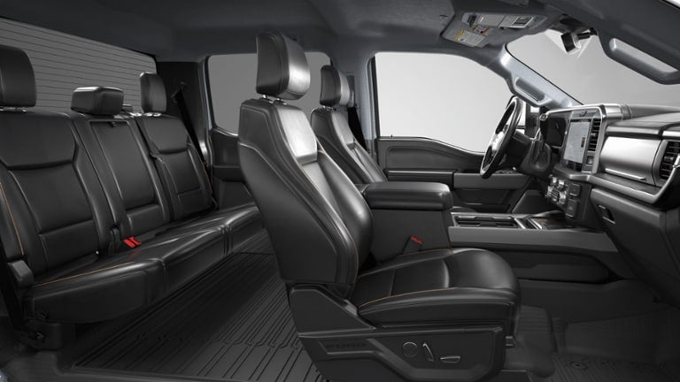 4-Wheel Disc Brakes, 410 Amp Dual Alternators, 5th Wheel/Gooseneck Hitch Prep Package, 6 Ebony Black Angular Running Boards, 8 Speakers, ABS brakes, Adaptive Cruise Control with Stop-and-Go, Adjustable pedals, Air Conditioning, All-Weather Floor Mats, Alloy wheels, AM/FM radio: SiriusXM with 360L, Auto High-beam Headlights, Auto-dimming Rear-View mirror, Automatic High Beam, Automatic temperature control, Black Appearance Package, Black Painted Front Grille Surround, BLIS with Cross-Traffic Alert, Body Color Front and Rear Bumpers, Brake assist, Bumpers: chrome, Compass, Delay-off headlights, Driver door bin, Driver vanity mirror, Dual AGM 68 AH Battery, Dual front impact airbags, Dual front side impact airbags, Ebony Black Painted Mirror Caps, Electronic Stability Control, Emergency communication system: SYNC 4 911 Assist, Engine Block Heater, Flow-Through Console, Ford Connectivity Package (1-Year Included), Front ActiveX Trimmed 40/Console/40 Seats, Front and Rear Parking Sensors, Front anti-roll bar, Front Bucket Seats, Front Center Armrest, Front dual zone A/C, Front fog lights, Front reading lights, Fully automatic headlights, FX4 Off-Road Package, Garage door transmitter, GVWR: F-250 >10K Package, Heated door mirrors, Heated front seats, Heated rear seats, Heated steering wheel, Hill Descent Control, Illuminated entry, Internet access capable: 5G Modem - Ford Connectivity Package, Lane-Keeping System, Lariat Premium Package, LED Roof Clearance Lights, Low tire pressure warning, Memory seat, Navigation system: Connected Navigation, Off-Road Specifically Tuned Shock Absorbers, Order Code 608A, Outside temperature display, Overhead airbag, Overhead console, Panic alarm, Passenger door bin, Passenger vanity mirror, Pedal memory, Post-Collision Braking, Power door mirrors, Power driver seat, Power passenger seat, Power steering, Power windows, Power-Sliding Rear-Window with Defrost, Pre-Collision Assist, Privacy Glass, Pro Trailer Backup Assist, Pro Trailer Hitch Assist, Radio: B&O Sound System by Bang and Olufsen, Rain sensing wipers, Rear Parking Sensors, Rear reading lights, Rear seat center armrest, Rear step bumper, Rear window defroster, Remote keyless entry, SecuriCode Keyless Entry Keypad (driver's Side), Security system, SiriusXM with 360L, Snow Plow Prep Package, Speed control, Split folding rear seat, Steering wheel mounted audio controls, SYNC 4 with Enhanced Voice Recognition, Tachometer, Telescoping steering wheel, Tilt steering wheel, Traction control, Trip computer, Turn signal indicator mirrors, Unique FX4 Off-Road Box Decal, Upfitter Switches (6), Variably intermittent wipers, Ventilated front seats, Wheels: 18 Bright Machined and Carbonized Gray Aluminum.