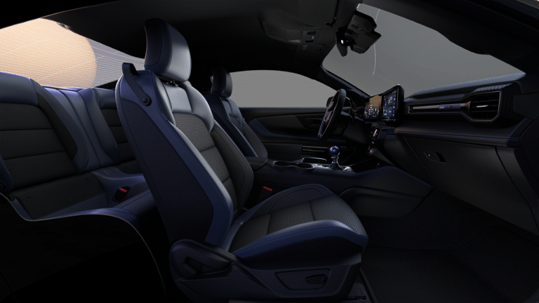 12 Speakers, 4-Wheel Disc Brakes, ABS brakes, Active Anti-Theft System, Adaptive suspension, Air Conditioning, Alloy wheels, Aluminum Foot Pedals, AM/FM radio: SiriusXM with 360L, AM/FM Stereo, Anti-Theft Package, Approach Detection, Auto High-beam Headlights, Auto-dimming Rear-View mirror, Automatic temperature control, B&O Sound System by Bang & Olufsen, Brake assist, Bumpers: body-color, Cloth/Vinyl Climate-Controlled Bucket Seats, Cloth/Vinyl Heated Bucket Seats, Compass, Dark Horse Appearance Package, Delay-off headlights, Driver door bin, Driver Seat Memory with 3 Settings, Driver vanity mirror, Dual front impact airbags, Dual front side impact airbags, Electronic Stability Control, Emergency communication system: 911 Assist, Equipment Group 700A Deluxe Package, Exterior Parking Camera Rear, Four wheel independent suspension, Front anti-roll bar, Front Bucket Seats, Front Center Armrest, Front dual zone A/C, Front reading lights, Fully automatic headlights, HD Radio, Heated front seats, Heated steering wheel, Illuminated entry, Knee airbag, Locking Center Console, Low tire pressure warning, Navigation system: Connected Navigation, Notorious Blue Painted Unique Brake Calipers, Occupant sensing airbag, Outside temperature display, Overhead airbag, Overhead console, Painted Black Roof, Panic alarm, Passenger door bin, Passenger vanity mirror, Power door mirrors, Power driver seat, Power passenger seat, Power steering, Power windows, Radio data system, Rain sensing wipers, Rear anti-roll bar, Rear Parking Sensors, Rear window defroster, Remote keyless entry, SiriusXM with 360L, Speed control, Speed-sensing steering, Speed-Sensitive Wipers, Split folding rear seat, Spoiler, Sport steering wheel, Steering wheel mounted audio controls, SYNC 4, Tachometer, Telescoping steering wheel, Tilt steering wheel, Traction control, Trip computer, Unique Hood Graphic, Variably intermittent wipers, Voltmeter, Wheel Locking Kit, Wheels: 19 x 9.5 Front & 19 x 10 Rear Aluminum.
