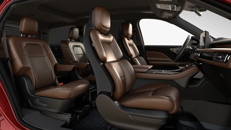 14 Speakers, 30-Way Perfect Position Seats with Active Motion, 3rd row seats: split-bench, 4-Wheel Disc Brakes, 40/Mini Console/40 Dual Captain's Chairs, ABS brakes, Adaptive Dynamic Bending Lighting, Adaptive Pixel LED Headlamps, Adaptive suspension, Advanced Heads-Up Display, Air Conditioning, Air Glide Suspension with Dynamic Lower Entry, Alloy wheels, AM/FM radio: SiriusXM, Apple CarPlay/Android Auto, Audio memory, Auto Air Refresh, Auto Heated and Ventilated Driver and Passenger Seats, Auto High-beam Headlights, Auto-dimming door mirrors, Auto-dimming Rear-View mirror, Automatic temperature control, Brake assist, Bumpers: body-color, Compass, Delay-off headlights, Driver door bin, Driver vanity mirror, Dual front impact airbags, Dual front side impact airbags, Dynamic Handling Package, Electronic Stability Control, Emergency communication system: 911 Assist, Equipment Group 201A Reserve II, Four wheel independent suspension, Front anti-roll bar, Front Bucket Seats, Front Center Armrest, Front dual zone A/C, Front reading lights, Fully automatic headlights, Garage door transmitter, Genuine wood console insert, Genuine wood dashboard insert, Heads-Up Display, Heated and Ventilated Rear Seats, Heated door mirrors, Heated front seats, Heated steering wheel, HVAC memory, Illuminated entry, Illuminated Lincoln Star in Grille, Illumination Package, Knee airbag, Leather steering wheel, Lincoln App, Lincoln BlueCruise Equipped (4-Years Included), Lincoln Connectivity Package (4-Years), Lincoln Digital Experience, Lincoln Dynamic Signature Lighting, Low tire pressure warning, Luxury Package, Memory seat, Navigation system: Google Maps, Occupant sensing airbag, Outside temperature display, Overhead airbag, Overhead console, Panic alarm, Passenger door bin, Passenger vanity mirror, Power door mirrors, Power driver seat, Power Liftgate, Power moonroof: Panoramic Vista Roof, Power passenger seat, Power steering, Power windows, Premium Leather Front Captain's Chairs, Radio data system, Radio: Revel Audio System with 14 Speakers, Radio: Revel Ultima 3D Audio System with 28 Speakers, Rain sensing wipers, Rear air conditioning, Rear anti-roll bar, Rear audio controls, Rear dual zone A/C, Rear reading lights, Rear window defroster, Rear window wiper, Remote keyless entry, Security system, SiriusXM, Speed control, Speed Dependent Lighting, Speed-Sensitive Wipers, Split folding rear seat, Spoiler, Steering wheel memory, Steering wheel mounted A/C controls, Steering wheel mounted audio controls, Tachometer, Telescoping steering wheel, Tilt steering wheel, Traction control, Trip computer, Turn signal indicator mirrors, Variably intermittent wipers, Ventilated front seats, Wheels: 21 Bright-Machined Aluminum with Dark Alloy Painted Pockets, Wheels: 22 Bright-Machined Aluminum with Magnetic Painted Pockets, Wireless Charging Pad.