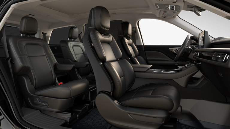 14 Speakers, 30-Way Perfect Position Seats with Active Motion, 3rd row seats: split-bench, 4-Wheel Disc Brakes, 40/Mini Console/40 Dual Captain's Chairs, ABS brakes, Adaptive Dynamic Bending Lighting, Adaptive Pixel LED Headlamps, Adaptive suspension, Advanced Heads-Up Display, Air Conditioning, Alloy wheels, AM/FM radio: SiriusXM, Apple CarPlay/Android Auto, Audio memory, Auto Air Refresh, Auto Heated and Ventilated Driver and Passenger Seats, Auto High-beam Headlights, Auto-dimming door mirrors, Auto-dimming Rear-View mirror, Automatic temperature control, Black Exterior Elements, Body-Color Exterior Elements, Brake assist, Bumpers: body-color, Compass, Delay-off headlights, Driver door bin, Driver vanity mirror, Dual front impact airbags, Dual front side impact airbags, Electronic Stability Control, Emergency communication system: 911 Assist, Equipment Group 201A Reserve II, Four wheel independent suspension, Front anti-roll bar, Front Bucket Seats, Front Center Armrest, Front dual zone A/C, Front reading lights, Fully automatic headlights, Garage door transmitter, Genuine wood console insert, Genuine wood dashboard insert, Heads-Up Display, Heated and Ventilated Rear Seats, Heated door mirrors, Heated front seats, Heated steering wheel, HVAC memory, Illuminated entry, Illuminated Lincoln Star in Grille, Illumination Package, Jet Appearance Package, Knee airbag, Leather steering wheel, Lincoln App, Lincoln BlueCruise Equipped (4-Years Included), Lincoln Connectivity Package (4-Years), Lincoln Digital Experience, Lincoln Dynamic Signature Lighting, Low tire pressure warning, Luxury Package, Memory seat, Navigation system: Google Maps, Occupant sensing airbag, Outside temperature display, Overhead airbag, Overhead console, Panic alarm, Passenger door bin, Passenger vanity mirror, Power door mirrors, Power driver seat, Power Liftgate, Power moonroof: Panoramic Vista Roof, Power passenger seat, Power steering, Power windows, Premium Leather Front Captain's Chairs, Radio data system, Radio: Revel Audio System with 14 Speakers, Radio: Revel Ultima 3D Audio System with 28 Speakers, Rain sensing wipers, Rear air conditioning, Rear anti-roll bar, Rear audio controls, Rear dual zone A/C, Rear reading lights, Rear window defroster, Rear window wiper, Remote keyless entry, Security system, SiriusXM, Speed control, Speed Dependent Lighting, Speed-Sensitive Wipers, Split folding rear seat, Spoiler, Steering wheel memory, Steering wheel mounted A/C controls, Steering wheel mounted audio controls, Tachometer, Telescoping steering wheel, Tilt steering wheel, Traction control, Trip computer, Turn signal indicator mirrors, Variably intermittent wipers, Ventilated front seats, Wheels: 21 Bright-Machined Aluminum with Dark Alloy Painted Pockets, Wheels: 22 Black Aluminum, Wheels: 22 Bright-Machined Aluminum with Magnetic Painted Pockets, Wireless Charging Pad.