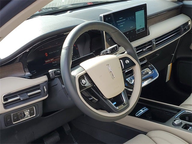 19 Bright Machined Aluminum Wheels, 2 Additional USB Ports in Rear of Center Console, 4-Wheel Disc Brakes, 60/40 EasyFold Rear Seat w/Power Seatback Release, 9 Speakers, ABS brakes, Air Conditioning, Alexa Built-In, All-Weather Floor Liners w/Fr&Rr Carpet Floor Mats, Alloy wheels, AM/FM radio: SiriusXM with 360L, Apple CarPlay/Android Auto, Auto Air Refresh (Ultra Fresh Cabin), Auto High-beam Headlights, Auto-dimming Rear-View mirror, Automatic temperature control, Brake assist, Bumpers: body-color, Compass, Delay-off headlights, Driver door bin, Driver State Detection, Driver vanity mirror, Dual front impact airbags, Dual front side impact airbags, Electronic Stability Control, Emergency communication system: 911 Assist, Equipment Group 202A, Exterior Parking Camera Rear, Four wheel independent suspension, Frameless Auto Dimming Rearview Mirror, Front anti-roll bar, Front Bucket Seats, Front Center Armrest, Front dual zone A/C, Front reading lights, Fully automatic headlights, Hands-Free Liftgate, Head-Up Display, Heated door mirrors, Heated front seats, Heated Rear Seat, Heated Sideview Mirrors, Heated Steering Wheel, Heated/Ventilated Driver & Front Passenger Seats, Illuminated entry, Knee airbag, Leather steering wheel, Lincoln BlueCruise (4 Years Included), Low tire pressure warning, Memory seat, Navigation system: Connected Navigation (4-year trial), Occupant sensing airbag, Outside temperature display, Overhead airbag, Overhead console, Panic alarm, Panoramic Vista Roof w/Power Shade, Passenger door bin, Passenger vanity mirror, Perfect Position Seats (24-Way) w/Active Motion, Phone As A Key (PAAK), Power door mirrors, Power driver seat, Power Liftgate, Power passenger seat, Power steering, Power Tilt/Telescoping Steering Column w/Memory, Power windows, Premium Leather-Trimmed Heated Captain's Chairs, Radio data system, Radio: Lincoln Premium Audio System w/MP3, Radio: Revel Audio System w/HD Radio & MP3, Rain Sensing Wipers, Rear anti-roll bar, Rear Parking Sensors, Rear reading lights, Rear seat center armrest, Rear window defroster, Rear window wiper, Remote keyless entry, Security system, SiriusXM w/360L Radio, Speed control, Speed-sensing steering, Speed-Sensitive Wipers, Split folding rear seat, Spoiler, Steering wheel mounted A/C controls, Steering wheel mounted audio controls, SYNC 4 Communications & Entertainment System, Tachometer, Telescoping steering wheel, Tilt steering wheel, Traction control, Trip computer, Universal Garage Door Opener, Variably intermittent wipers, Wheels: 20 Bright Machined Aluminum, Windshield Wiper De-Icer, Wireless Charging Pad.