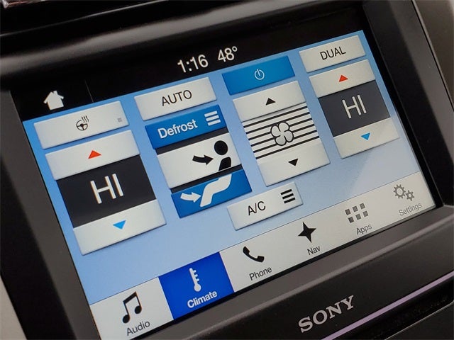 12 Speakers, 4-Wheel Disc Brakes, ABS brakes, Air Conditioning, All-Weather Front & Rear Floor Mats, Alloy wheels, AM/FM radio: SiriusXM, Auto-dimming door mirrors, Auto-dimming Rear-View mirror, Automatic temperature control, Brake assist, Bumpers: body-color, CD player, Compass, Delay-off headlights, Driver door bin, Driver vanity mirror, Dual front impact airbags, Dual front side impact airbags, Electronic Stability Control, Emergency communication system: SYNC 3 911 Assist, Exterior Parking Camera Rear, Four wheel independent suspension, Front anti-roll bar, Front Bucket Seats, Front Center Armrest, Front dual zone A/C, Front fog lights, Front License Plate Bracket, Front reading lights, Fully automatic headlights, Heated door mirrors, Heated front seats, Illuminated entry, Knee airbag, Low tire pressure warning, Memory seat, Occupant sensing airbag, Outside temperature display, Overhead airbag, Overhead console, Panic alarm, Passenger door bin, Passenger vanity mirror, Power door mirrors, Power driver seat, Power passenger seat, Power steering, Power windows, Radio data system, Radio: AM/FM Stereo/MP3/Single-CD, Rear anti-roll bar, Rear reading lights, Rear seat center armrest, Rear window defroster, Remote keyless entry, Security system, SiriusXM Radio, Speed control, Speed-sensing steering, Speed-Sensitive Wipers, Split folding rear seat, Spoiler, Steering wheel mounted audio controls, SYNC 3 Communications & Entertainment System, SYNC Connect, Tachometer, Telescoping steering wheel, Tilt steering wheel, Traction control, Trip computer, Turn signal indicator mirrors, Variably intermittent wipers.