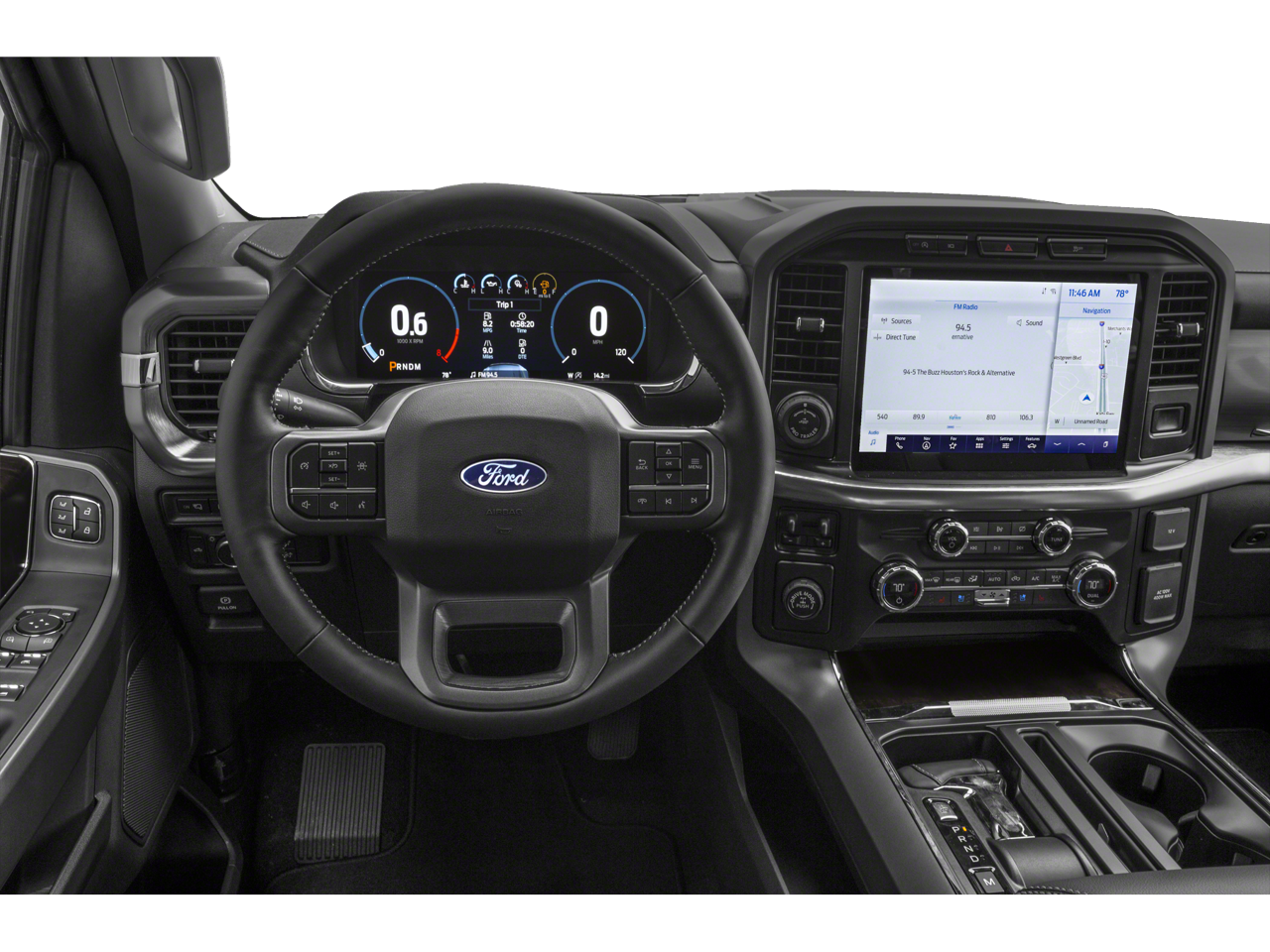 18 Machined-Aluminum Wheels, 2nd Row Heated Seats, 360 Degree Camera, 4-Wheel Disc Brakes, 6 Chrome Running Board, 7 Speakers, ABS brakes, Accent-Color Angular Step Bars, Active Park Assist 2.0, Adjustable pedals, Air Conditioning, Alloy wheels, AM/FM radio: SiriusXM with 360L, Auto High-beam Headlights, Auto-dimming door mirrors, Auto-dimming Rear-View mirror, Automatic temperature control, BlueCruise Hands-Free Driving, Body-Color Front & Rear Bumpers, Box Side Decals, Brake assist, Bumpers: chrome, Chrome 2-Bar Grille w/4 Minor Bars, Chrome Door & Tailgate Handles w/Body-Color Bezel, Chrome Single-Tip Exhaust, Chrome Skull Caps on Exterior Mirrors, Class IV Trailer Hitch Receiver, Compass, Connected Built-In Navigation, Dark 2-Bar & 1 Minor Bar Style Grille, Delay-off headlights, Driver door bin, Driver vanity mirror, Dual front impact airbags, Dual front side impact airbags, Electronic Stability Control, Emergency communication system: SYNC 4 911 Assist, Equipment Group 502A High, Evasive Steering Assist, Extended Range 36 Gallon Fuel Tank, Exterior Parking Camera Rear, Ford Co-Pilot360 Active 2.0 Package, Ford Co-Pilot360 Assist 2.0, Front anti-roll bar, Front Center Armrest w/Storage, Front dual zone A/C, Front fog lights, Front reading lights, Front wheel independent suspension, Fully automatic headlights, FX4 Off-Road Package, Heated door mirrors, Heated front seats, Heated Steering Wheel, Illuminated entry, Integrated Trailer Brake Controller, Intelligent Adaptive Cruise Control w/Stop & Go, Intersection Assist, Lariat Chrome Appearance Package, Lariat Sport Appearance Package, Leather-Trimmed 40/20/40 Front Seat, Leather-Trimmed Bucket Seats, LED Projector w/Dynamic Bending Headlamps, LED Sideview Mirror Spotlights, Low tire pressure warning, Max Trailer Tow Package, Memory seat, Navigation system: Connected Navigation (90-Day Trial), Occupant sensing airbag, Onboard 400W Outlet, Outside temperature display, Overhead airbag, Overhead console, Panic alarm, Passenger door bin, Passenger vanity mirror, Pedal memory, Power door mirrors, Power driver seat, Power Glass Sideview Mirr w/Chrome Skull Caps, Power passenger seat, Power steering, Power Tailgate, Power Telescoping/Glass/Folding Trailer Tow Mirrors, Power Tilt/Telescoping Steering Column w/Memory, Power windows, Power-Deployable Running Boards, Pro Trailer Backup Assist, Radio data system, Radio: AM/FM SiriusXM w/360L, Radio: B&O Sound System by Bang & Olufsen, Rain-Sensing Wipers, Rear reading lights, Rear seat center armrest, Rear step bumper, Rear window defroster, Remote keyless entry, Security system, Speed control, Speed Sign Recognition, Speed-sensing steering, Split folding rear seat, Steering wheel mounted audio controls, SYNC 4 w/Enhanced Voice Recognition, Tachometer, Telescoping steering wheel, Tilt steering wheel, Traction control, Tray Style Floor Liner (47W), Trip computer, Turn signal indicator mirrors, Universal Garage Door Opener, Variably intermittent wipers, Ventilated front seats, Voltmeter, Wheels: 18 6-Spoke Machined Aluminum, Wheels: 18 Chrome-Like PVD.