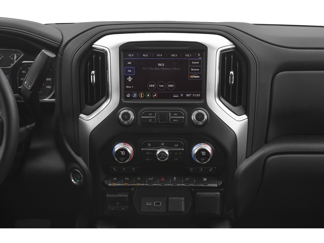 10-Way Power Driver Seat Adjuster w/Lumbar, 10-Way Power Passenger Seat Adjuster w/Lumbar, 12-Volt Rear Auxiliary Power Outlet, 120-Volt Bed Mounted Power Outlet, 120-Volt Instrument Panel Power Outlet, 170 Amp Alternator, 2 USB Ports, 2 USB Ports (1st Row), 20 x 9 Polished Aluminum Wheels, 220 Amp Alternator, 3.23 Rear Axle Ratio, 4-Wheel Disc Brakes, 4G LTE Wi-Fi Hotspot Capable, 6 Speakers, 6-Speaker Audio System Feature, ABS brakes, Adaptive Cruise Control, Air Conditioning, All-Weather Floor Liner (LPO), Alloy wheels, AM/FM radio: SiriusXM with 360L, Apple CarPlay/Android Auto, Auto-dimming door mirrors, Auto-dimming Rear-View mirror, Auto-Locking Rear Differential, Automatic Emergency Braking, Automatic temperature control, Auxiliary External Transmission Oil Cooler, Brake assist, Bumpers: chrome, Chrome Grille, Chrome Wheel To Wheel Assist Steps, Color-Keyed Carpeting Floor Covering, Compass, Deep-Tinted Glass, Delay-off headlights, Driver Alert Package I, Driver Alert Package II, Driver door bin, Driver Memory, Driver vanity mirror, Dual front impact airbags, Dual front side impact airbags, Electric Rear-Window Defogger, Electrical Lock Control Steering Column, Electronic Stability Control, Engine Block Heater, Floor-Mounted Center Console, Following Distance Indicator, Forward Collision Alert, Front 40/20/40 Split-Bench Seat, Front anti-roll bar, Front Bucket Seats, Front Center Armrest w/Storage, Front dual zone A/C, Front fog lights, Front Frame-Mounted Black Recovery Hooks, Front Pedestrian Braking, Front reading lights, Front wheel independent suspension, Fully automatic headlights, GMC Connected Access Capable, Heated 2nd Row Outboard Seats, Heated door mirrors, Heated Driver & Front Outboard Passenger Seating, Heated front seats, Heated steering wheel, Heavy Duty Suspension, Hitch Guidance, Hitch Guidance w/Hitch View, Illuminated entry, In-Vehicle Trailering App, Integrated Trailer Brake Controller, IntelliBeam Automatic High Beam On/Off, Keyless Open & Start, Lane Change Alert w/Side Blind Zone Alert, Lane Keep Assist w/Lane Departure Warning, LED Cargo Area Lighting, Low tire pressure warning, Manual Tilt-Wheel & Telescoping Steering Column, Memory seat, Occupant sensing airbag, OnStar & GMC Connected Services Capable, Outside temperature display, Overhead airbag, Overhead console, Panic alarm, Passenger door bin, Passenger vanity mirror, Perf Leather-Appointed Front Outboard Seat Trim, Perimeter Lighting, Power Door Locks, Power door mirrors, Power driver seat, Power Front Passenger Windows w/Express Up/Down, Power Front Windows w/Driver Express Up/Down, Power passenger seat, Power Rear Windows w/Express Down, Power Sliding Rear Window w/Rear Defogger, Power steering, Power windows, Preferred Equipment Group 4SA, Premium audio system: GMC Infotainment System, Premium Bose 7-Speaker Sound System, ProGrade Trailering System, Radio data system, Radio: Premium GMC Infotainment Sys w/Multi-Touch, Radio: Premium GMC Infotainment Sys w/Navigation, Rear Cross Traffic Alert, Rear Dual USB Charging-Only Ports, Rear reading lights, Rear seat center armrest, Rear step bumper, Rear Wheelhouse Liners, Rear window defroster, Remote keyless entry, Remote Vehicle Starter System, Safety Alert Seat, Security system, SiriusXM w/360L, SLT Convenience Package, SLT Preferred Package, SLT Premium Plus Package, Speed control, Speed-sensing steering, Split folding rear seat, Spray-On Pickup Bed Liner w/GMC Logo, Steering Wheel Audio Controls, Steering wheel mounted audio controls, Tachometer, Telescoping steering wheel, Theft Deterrent System (Unauthorized Entry), Tilt steering wheel, Traction control, Trailer Tire Pressure Monitor System, Trailering Package, Trip computer, Ultrasonic Front & Rear Park Assist, Universal Home Remote, Variably intermittent wipers, Ventilated Driver & Front Passenger Seats, Voltmeter, Wheels: 18 x 8.5 6-Spok