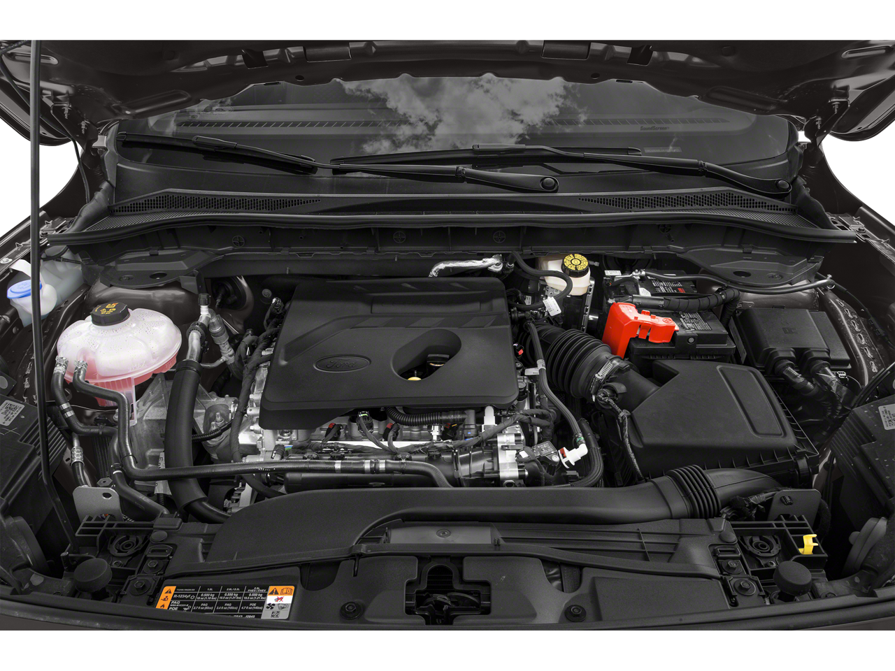 3.81 Axle Ratio, 4-Wheel Disc Brakes, 4G LTE Wi-Fi Hotspot Removal, 6 Speakers, 8-Way Power Driver Seat, ABS brakes, Air Conditioning, Alloy wheels, AM/FM radio: SiriusXM, AM/FM Stereo, Auto High-beam Headlights, Black Front & Rear Bumpers, Black Upper Window Molding w/Black Beltline Molding, Brake assist, Bumpers: body-color, Cold Weather Package, Compass, Convenience Package, Delay-off headlights, Driver door bin, Driver vanity mirror, Dual front impact airbags, Dual front side impact airbags, Dual-Zone Electronic Automatic Temperature Control, Electronic Automatic Temperature Control (EATC), Electronic Stability Control, Emergency communication system: SYNC 3 911 Assist, Equipment Group 200A, Exterior Parking Camera Rear, Fold-Down Rear Center Armrest w/2 Cupholders, FordPass Connect, Four wheel independent suspension, Front anti-roll bar, Front Bucket Seats, Front Center Armrest, Front reading lights, Fully automatic headlights, Gloss Black 5-Bar Upper Grille w/Chrome Surround, Halogen Projector Headlamps w/LED Signature, Heated & Premium Wrapped Steering Wheel, Heated Front Row Seats, Heated Sideview Mirrors, High Gloss Black Mirror Skull Caps, Illuminated entry, Knee airbag, Low tire pressure warning, Occupant sensing airbag, Outside temperature display, Overhead airbag, Overhead console, Panic alarm, Passenger door bin, Passenger vanity mirror, Power door mirrors, Power Liftgate, Power steering, Power windows, Radio data system, Rear anti-roll bar, Rear reading lights, Rear window defroster, Rear window wiper, Remote keyless entry, Remote Start System w/86C, SE Sport Appearance Package, Speed control, Speed-sensing steering, Speed-Sensitive Wipers, Split folding rear seat, Spoiler, Steering wheel mounted audio controls, SYNC 3 Communications & Entertainment System, Tachometer, Telescoping steering wheel, Tilt steering wheel, Traction control, Trip computer, Unique Cloth Front Bucket Seats, Variably intermittent wipers, Wheels: 17 Shadow Silver-Painted Aluminum, Wheels: 19 Machined-Face Ebony-Painted Aluminum.