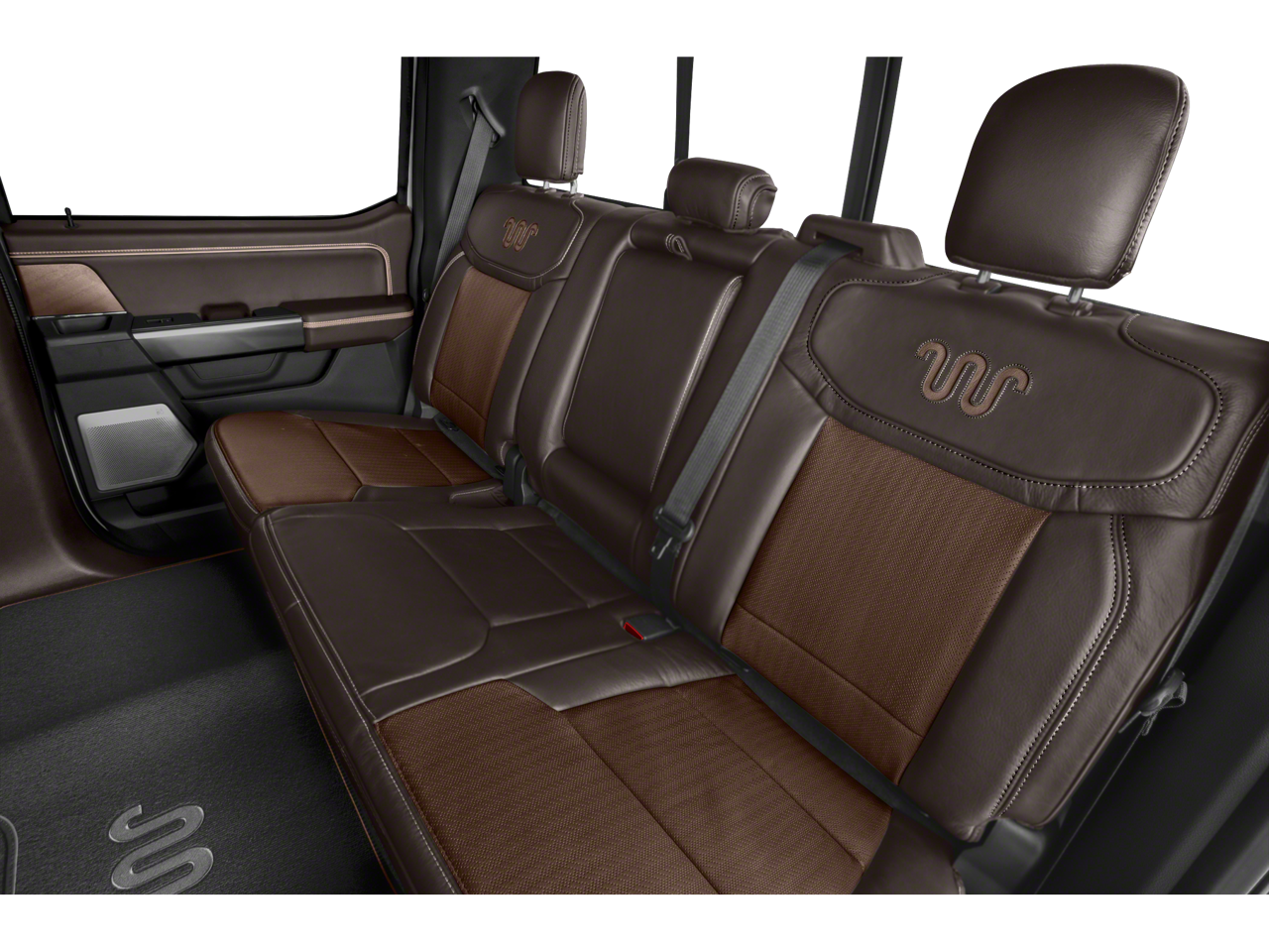 18 Machined-Aluminum Wheels, 20 Machined-Aluminum Wheels, 360 Degree Camera, 4-Wheel Disc Brakes, 4x4 FX4 Off-Road Bodyside Decal, 8 Speakers, ABS brakes, Adjustable pedals, Air Conditioning, Alloy wheels, AM/FM radio: SiriusXM with 360L, Auto High-beam Headlights, Auto Start-Stop Removal, Auto tilt-away steering wheel, Auto-dimming door mirrors, Auto-dimming Rear-View mirror, Automatic temperature control, Bed Utility Package, BoxLink, Brake assist, Class IV Trailer Hitch Receiver, Compass, Delay-off headlights, Driver door bin, Driver vanity mirror, Dual front impact airbags, Dual front side impact airbags, Electronic Stability Control, Emergency communication system: SYNC 4 911 Assist, Engine Block Heater, Equipment Group 601A High, Extended Range 36 Gallon Fuel Tank, Exterior Parking Camera Rear, Front anti-roll bar, Front Bucket Seats, Front Center Armrest, Front dual zone A/C, Front fog lights, Front reading lights, Front wheel independent suspension, Fully automatic headlights, FX4 Off-Road Package, Garage door transmitter, Genuine wood console insert, Genuine wood dashboard insert, Genuine wood door panel insert, Heated door mirrors, Heated front seats, Heated rear seats, Heated steering wheel, Hill Descent Control, Illuminated entry, Integrated Trailer Brake Controller, King Ranch Leather Bucket Seats, LED Box Lighting, LED Sideview Mirror Spotlights, Low tire pressure warning, Memory seat, Monotube Rear Shocks, Multi-Contour Driver & Passenger Seats, Multicontour Seats w/Active Motion Removal, Occupant sensing airbag, Off-Road Tuned Front Shock Absorbers, Outside temperature display, Overhead airbag, Overhead console, Panic alarm, Passenger door bin, Passenger vanity mirror, Pedal memory, Power door mirrors, Power driver seat, Power passenger seat, Power steering, Power Tailgate, Power windows, Power-Deployable Running Boards, Pro Trailer Backup Assist, Radio data system, Radio: B&O Sound System by Bang & Olufsen, Radio: B&O Unleashed Sound System by Bang & Olufsen, Rain sensing wipers, Rear reading lights, Rear seat center armrest, Rear step bumper, Rear window defroster, Remote keyless entry, Rock Crawl Mode, Security system, Speed control, Speed-sensing steering, Split folding rear seat, Steering wheel memory, Steering wheel mounted audio controls, SYNC 4 w/Enhanced Voice Recognition, Tachometer, Tailgate Step w/Tailgate Work Surface, Telescoping steering wheel, Tilt steering wheel, Tough Bed Spray-In Bedliner, Tow Technology Package, Traction control, Tray Style Floor Liner, Trip computer, Turn signal indicator mirrors, Twin Panel Moonroof, Variably intermittent wipers, Ventilated front seats, Voltmeter, Wheel Well Liner.