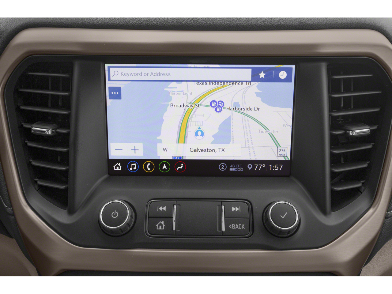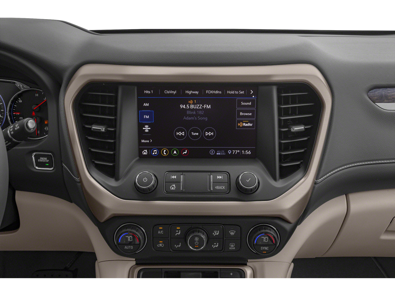 - Audio system, 8" diagonal GMC Infotainment System with Navigation includes multi-touch display, AM/FM/SiriusXM stereo, Bluetooth streaming audio for music and most phones, Android Auto and Apple CarPlay capability for compatible phones, advanced voice recognition, in-vehicle apps, personalized profiles for infotainment and vehicle settings