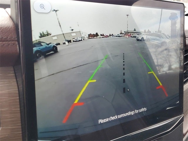 12 Speakers, 3.31 Axle Ratio, 3rd row seats: split-bench, 4-Wheel Disc Brakes, ABS brakes, Adjustable pedals, Air Conditioning, Alloy wheels, AM/FM radio: SiriusXM with 360L, Auto High-beam Headlights, Auto Start-Stop Removal (DISC), Auto-dimming door mirrors, Auto-dimming Rear-View mirror, Automatic temperature control, Brake assist, Bumpers: body-color, Compass, Delay-off headlights, Driver door bin, Driver vanity mirror, Dual front impact airbags, Dual front side impact airbags, Electronic Stability Control, Emergency communication system: SYNC 4 911 Assist, Equipment Group 301A Mid Package, Exterior Parking Camera Rear, Four wheel independent suspension, Front anti-roll bar, Front Bucket Seats, Front Center Armrest, Front dual zone A/C, Front fog lights, Front reading lights, Fully automatic headlights, Garage door transmitter, Heated & Ventilated Leather Front Captain's Chairs, Heated door mirrors, Heated front seats, Heated rear seats, Heated steering wheel, Illuminated entry, Leather steering wheel, Low tire pressure warning, Memory seat, Navigation system: Connected Navigation, Occupant sensing airbag, Outside temperature display, Overhead airbag, Overhead console, Panic alarm, Panoramic Vista Roof, Passenger door bin, Passenger vanity mirror, Pedal memory, Power door mirrors, Power driver seat, Power Liftgate, Power moonroof, Power passenger seat, Power steering, Power windows, Radio data system, Radio: B&O Sound System by Bang & Olufsen, Rain sensing wipers, Rear air conditioning, Rear anti-roll bar, Rear reading lights, Rear window defroster, Rear window wiper, Reclining 3rd row seat, Remote keyless entry, Second Row Power Windows Removal, Security system, SiriusXM w/360L, Speed control, Speed-sensing steering, Speed-Sensitive Wipers, Split folding rear seat, Spoiler, Steering wheel memory, Steering wheel mounted audio controls, SYNC 4 w/Enhanced Voice Recognition, Tachometer, Telescoping steering wheel, Tilt steering wheel, Traction control, Trip computer, Turn signal indicator mirrors, Variably intermittent wipers, Ventilated front seats, Voltmeter, Wheels: 20 Bright Machined Aluminum.