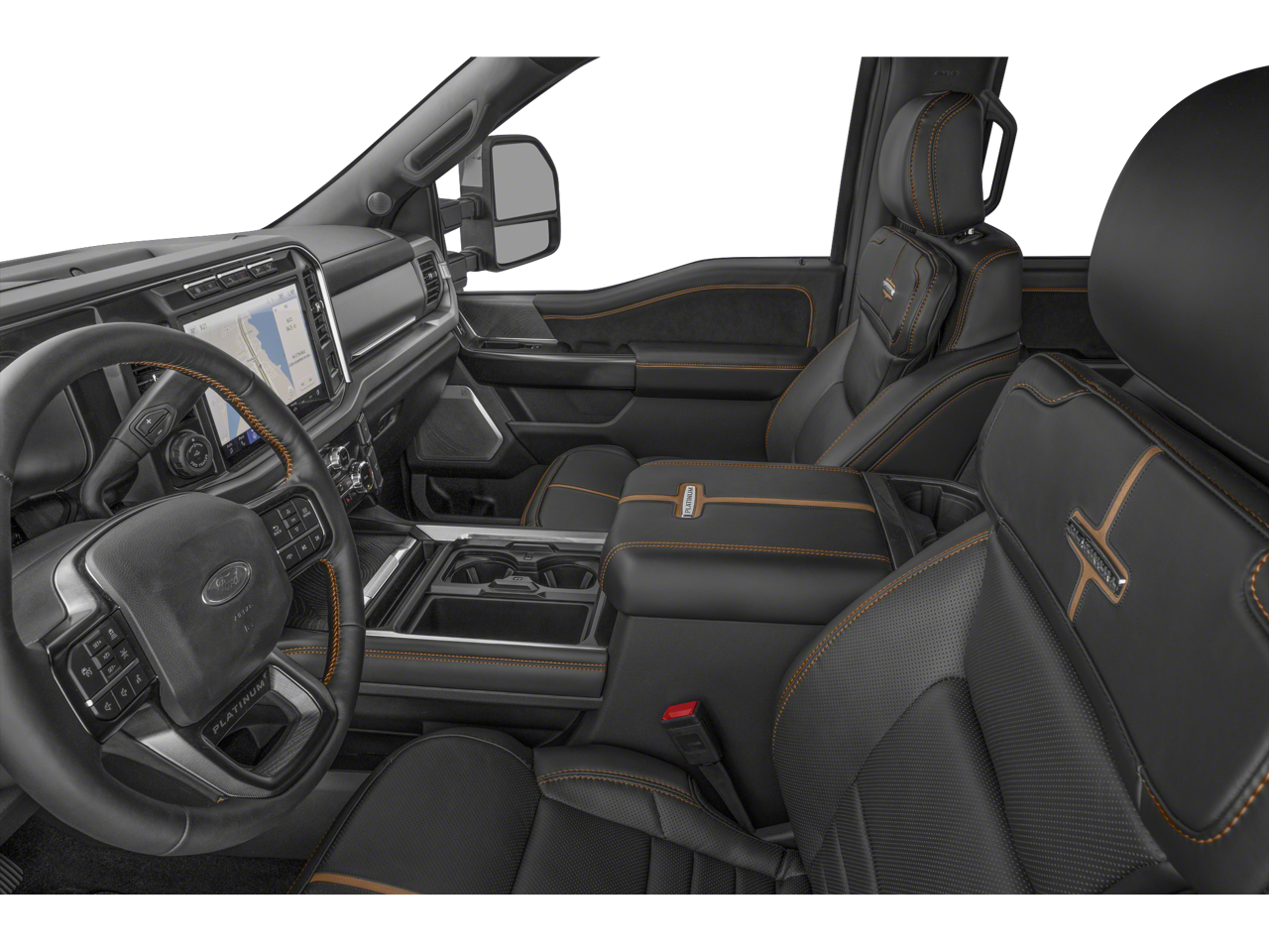 12,000 lb Ford Performance Parts Winch by Warn, 4-Wheel Disc Brakes, ABS brakes, Adjustable pedals, Air Conditioning, Alloy wheels, AM/FM radio: SiriusXM with 360L, Auto High-beam Headlights, Auto tilt-away steering wheel, Auto-dimming Rear-View mirror, Automatic temperature control, Brake assist, Compass, Delay-off headlights, Driver door bin, Driver vanity mirror, Dual front impact airbags, Dual front side impact airbags, Electronic Stability Control, Emergency communication system: SYNC 4 911 Assist, Engine Block Heater, Exterior Parking Camera Rear, F-250 >10K GVWR Package, Flow-Through Console, Front & Rear Wheel Well Liners (Pre-Installed), Front anti-roll bar, Front Bucket Seats, Front Center Armrest, Front dual zone A/C, Front fog lights, Front reading lights, Fully automatic headlights, Garage door transmitter, Heated door mirrors, Heated front seats, Heated rear seats, Heated steering wheel, High Capacity 11.6 Axle Upgrade Package, Illuminated entry, Leather steering wheel, LED Roof Clearance Lights, Low tire pressure warning, Memory seat, Navigation system: Connected Navigation, Outside temperature display, Overhead airbag, Overhead console, Panic alarm, Passenger door bin, Passenger vanity mirror, Pedal memory, Power door mirrors, Power driver seat, Power passenger seat, Power steering, Power windows, Radio: B&O Unleashed Sound System by Bang & Olufsen, Rain sensing wipers, Rapid-Heat Supplemental Cab Heater, Rear reading lights, Rear seat center armrest, Rear step bumper, Rear window defroster, Remote keyless entry, Security system, SiriusXM Radio w/360L, Speed control, Split folding rear seat, Steering wheel memory, Steering wheel mounted audio controls, SYNC 4 w/Enhanced Voice Recognition, Tachometer, Telescoping steering wheel, Tilt steering wheel, Tough Bed Spray-In Bedliner, Traction control, Trip computer, Turn signal indicator mirrors, Twin Panel Power Moonroof, Variably intermittent wipers, Ventilated front seats.