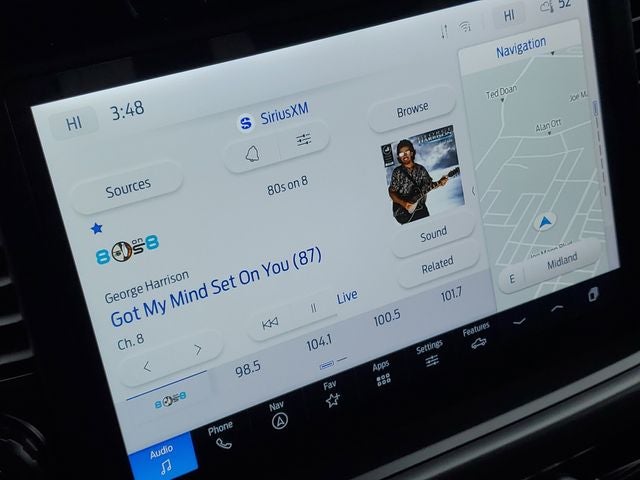3.55 Axle Ratio, 4-Wheel Disc Brakes, 400W Cab & Bed Outlets, 6 Speakers, 6 Black Running Boards, ABS brakes, Adaptive Cruise Control w/Stop & Go, Air Conditioning, Alloy wheels, AM/FM radio: SiriusXM with 360L, Auto High-beam Headlights, Auto-Dimming Rear-View Mirror, Auto-dimming Rear-View mirror, Automatic temperature control, Black Exterior Badging, Black Grille, Body-Color Front & Rear Bumpers, Brake assist, Bumpers: chrome, Chrome wheels, Cloth 40/20/40 Front Seat, Cloth 40/Console/40 Front Seats, Compass, Dark Interior Appliques, Delay-off headlights, Driver door bin, Driver vanity mirror, Dual front impact airbags, Dual front side impact airbags, Electronic Stability Control, Emergency communication system: SYNC 4 911 Assist, Equipment Group 302A Mid, Floor Shifter, Ford BlueCruise Equipped (90-Day Trial), Front anti-roll bar, Front Center Armrest w/Storage, Front dual zone A/C, Front fog lights, Front reading lights, Front wheel independent suspension, Fully automatic headlights, Gray Box Side Decal, GVWR: 6,650 lbs Payload Package, Heated door mirrors, Heated Front Seats, Illuminated entry, Intelligent Access w/Push Button Start, Low tire pressure warning, Navigation system: Connected Navigation, Occupant sensing airbag, Outside temperature display, Overhead airbag, Overhead console, Panic alarm, Passenger door bin, Passenger vanity mirror, Power door mirrors, Power driver seat, Power Glass Heated Sideview Mirrors, Power steering, Power windows, Power-Sliding Rear Window, Radio data system, Radio: AM/FM SiriusXM w/360L, Rear reading lights, Rear step bumper, Rear window defroster, Remote keyless entry, Remote Start System w/Remote Tailgate Release, Security system, Speed control, Speed Sign Recognition, Split folding rear seat, Steering wheel mounted audio controls, SYNC 4 w/Enhanced Voice Recognition, Tachometer, Telescoping steering wheel, Tilt steering wheel, Traction control, Trip computer, Unique Sport Cloth 40/Console/40 Front-Seats, Variably intermittent wipers, Voltmeter, Wheels: 18 Chrome-Like PVD, Wheels: 18 Gloss Black, XLT Black Appearance Package.