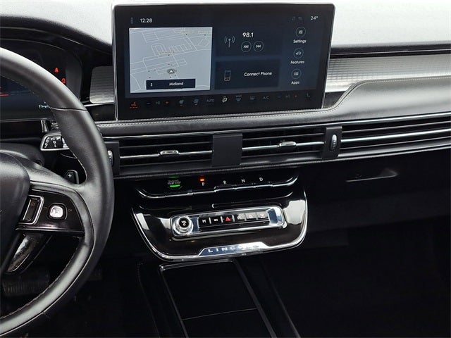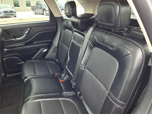 18 Bright Machined Aluminum Wheels, 19 Bright Machined Aluminum Wheels, 2 Additional USB Ports in Rear of Center Console, 3.81 Axle Ratio, 360-Degree Camera, 4-Wheel Disc Brakes, 60/40 EasyFold Rear Seat w/Power Seatback Release, 9 Speakers, ABS brakes, Air Conditioning, Alexa Built-In, All-Weather Floor Liners, Alloy wheels, AM/FM radio: SiriusXM, Apple CarPlay/Android Auto, Auto High-beam Headlights, Auto-dimming Rear-View mirror, Automatic temperature control, Brake assist, Bumpers: body-color, Compass, Delay-off headlights, Driver door bin, Driver vanity mirror, Dual front impact airbags, Dual front side impact airbags, Electronic Stability Control, Emergency communication system: 911 Assist, Equipment Group 101A, Four wheel independent suspension, Frameless Auto Dimming Rearview Mirror, Front anti-roll bar, Front Bucket Seats, Front Center Armrest, Front dual zone A/C, Front reading lights, Front/Side/Rear Parking Sensors, Fully automatic headlights, Hands-Free Liftgate, Heated door mirrors, Heated front seats, Heated Sideview Mirrors, Heated Steering Wheel, Heated/Ventilated Driver & Front Passenger Seats, Illuminated entry, Knee airbag, Lane Departure Warning System, Leather steering wheel, Lincoln Soft Touch Heated Front Captain's Chairs, Low tire pressure warning, Memory seat, Micro-Perf Lincoln Soft Touch Captain's Chairs, Navigation system: Connected Navigation (3-year trial), Occupant sensing airbag, Outside temperature display, Overhead airbag, Overhead console, Panic alarm, Panoramic Vista Roof w/Power Shade, Passenger door bin, Passenger vanity mirror, Phone As A Key (PAAK), Power door mirrors, Power driver seat, Power Liftgate, Power passenger seat, Power steering, Power Tilt/Telescoping Steering Column w/Memory, Power windows, Radio data system, Radio: Lincoln Premium Audio System w/MP3, Rain Sensing Wipers, Rear anti-roll bar, Rear Parking Sensors, Rear reading lights, Rear Removable Package Tray, Rear seat center armrest, Rear window defroster, Rear window wiper, Remote keyless entry, Reverse Brake Assist, Security system, SiriusXM Radio, Speed control, Speed-sensing steering, Speed-Sensitive Wipers, Split folding rear seat, Spoiler, Steering wheel mounted A/C controls, Steering wheel mounted audio controls, SYNC 4 Communications & Entertainment System, Tachometer, Telescoping steering wheel, Tilt steering wheel, Traction control, Trip computer, Universal Garage Door Opener, Variably intermittent wipers, Wheels: 18 Warm Painte
